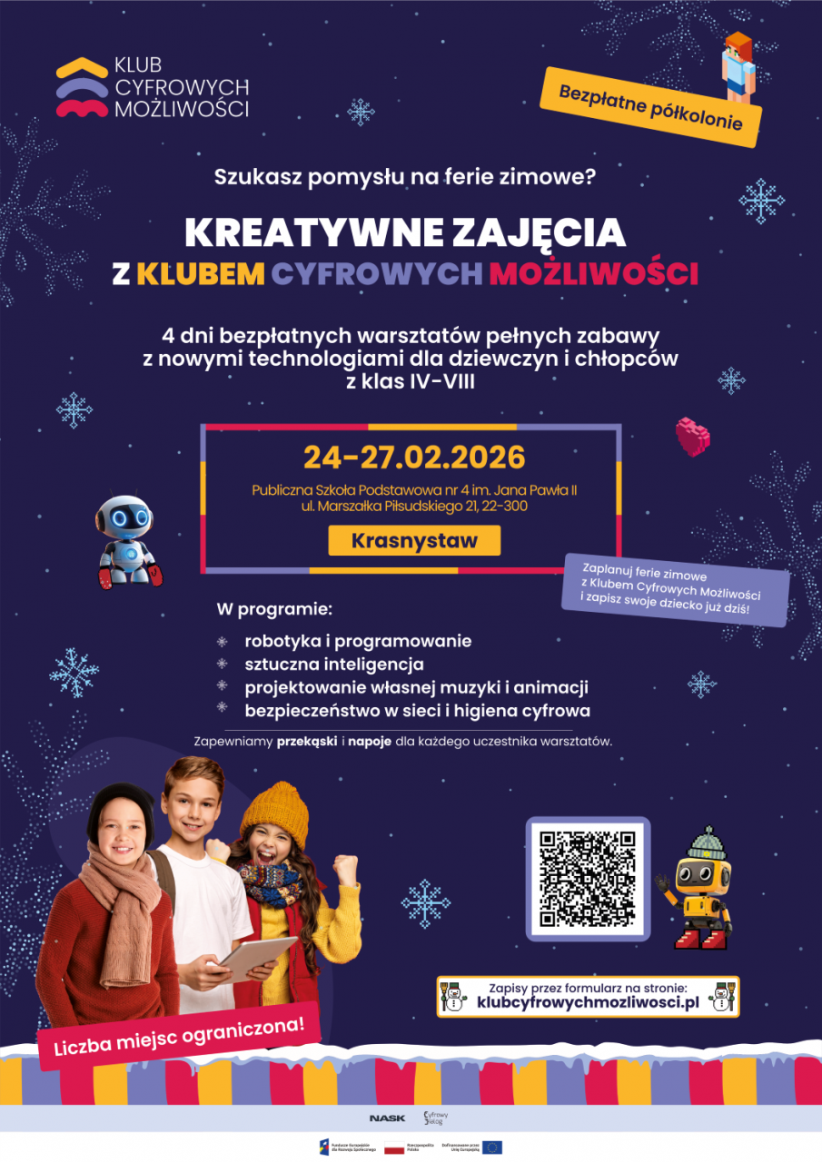 Zaplanujcie kreatywne ferie zimowe w Klubem Cyfrowych Możliwości! ☃️