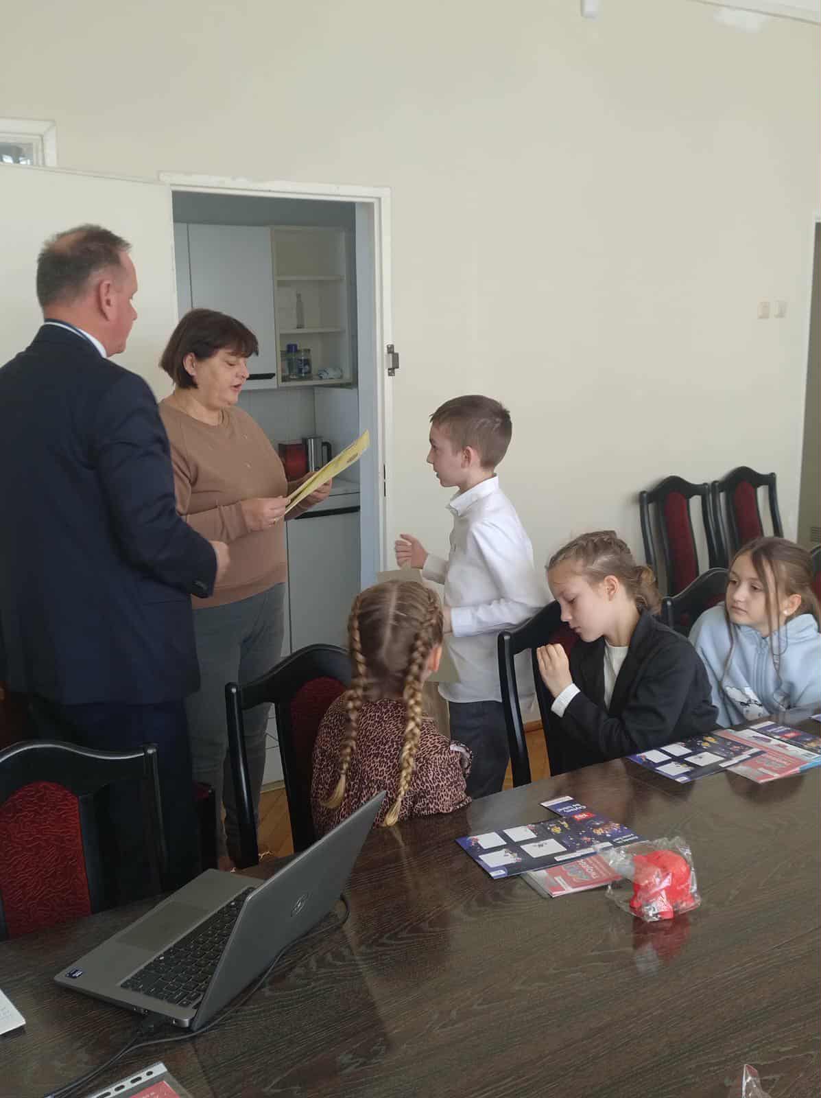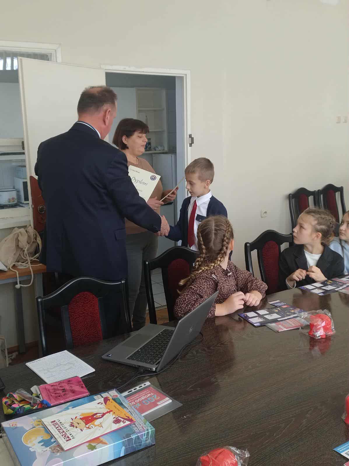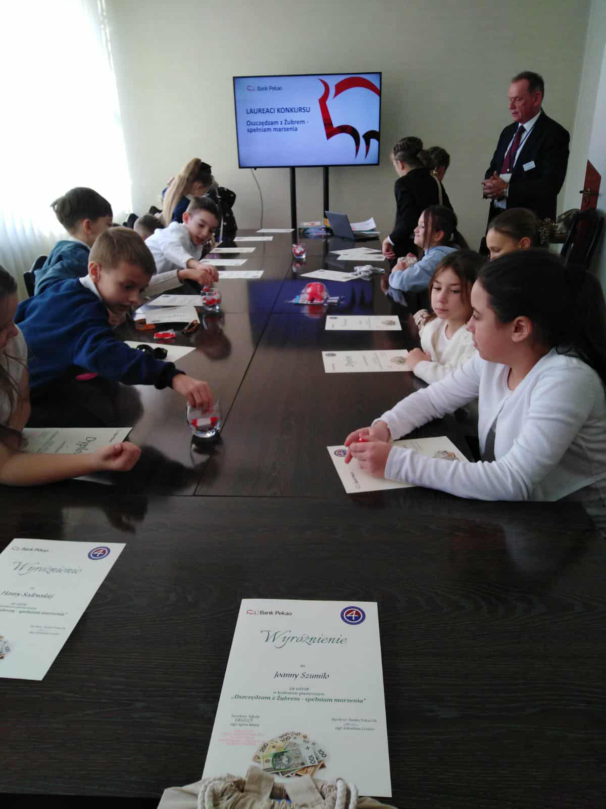 Nagrodzeni uczniowie zostali zaproszeni przez dyrektora Banku Pekao S.A., pana Arkadiusza Lendera do siedziby banku, gdzie odebrali atrakcyjne nagrody ufundowane przez bank.
