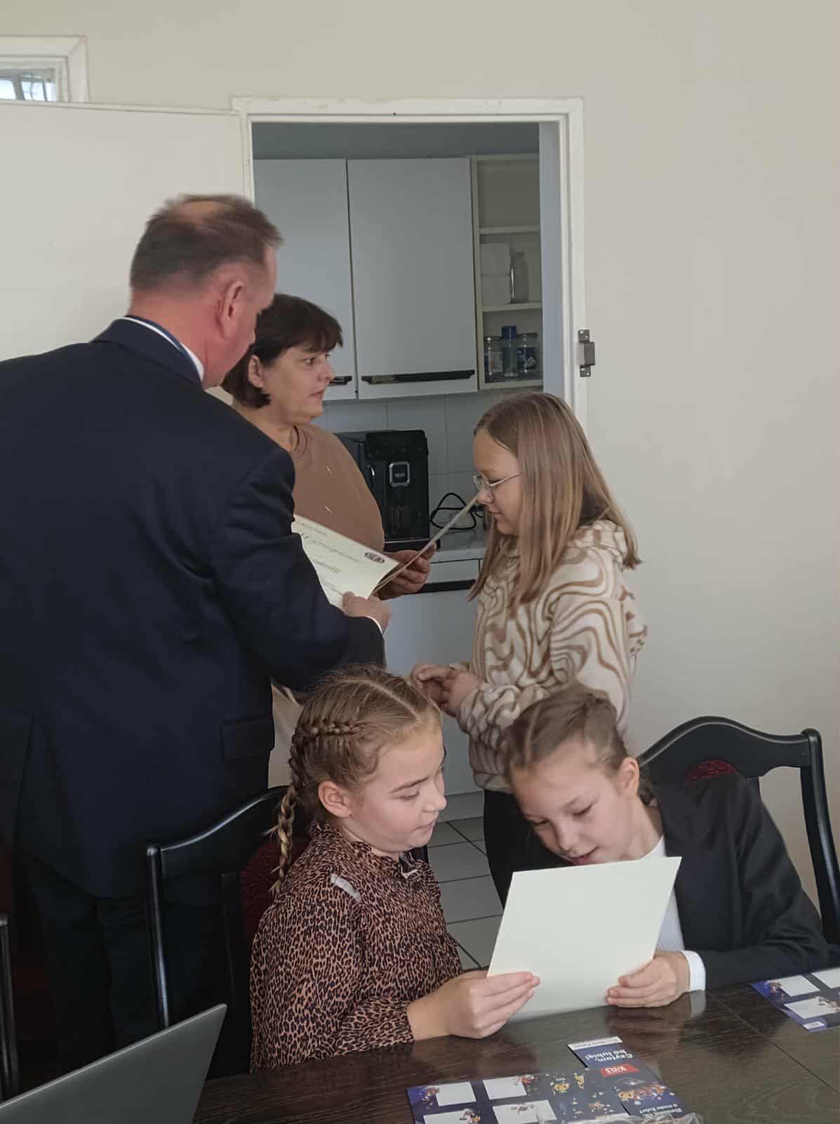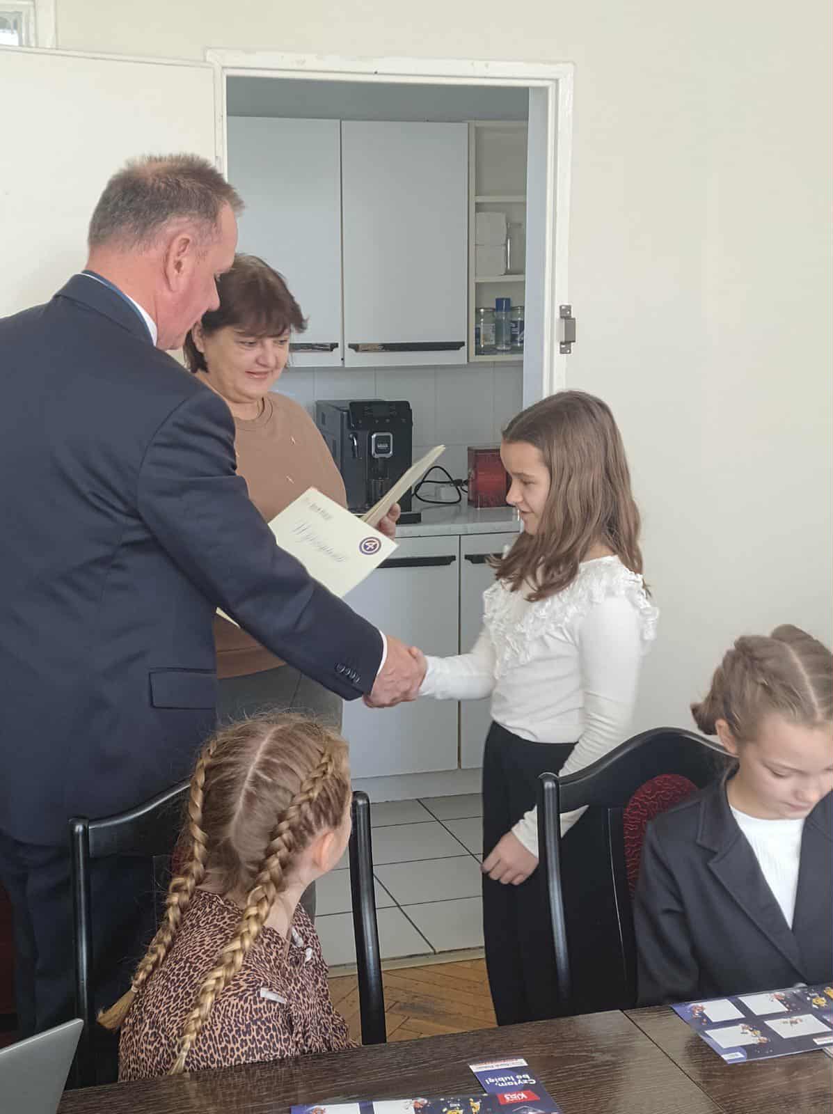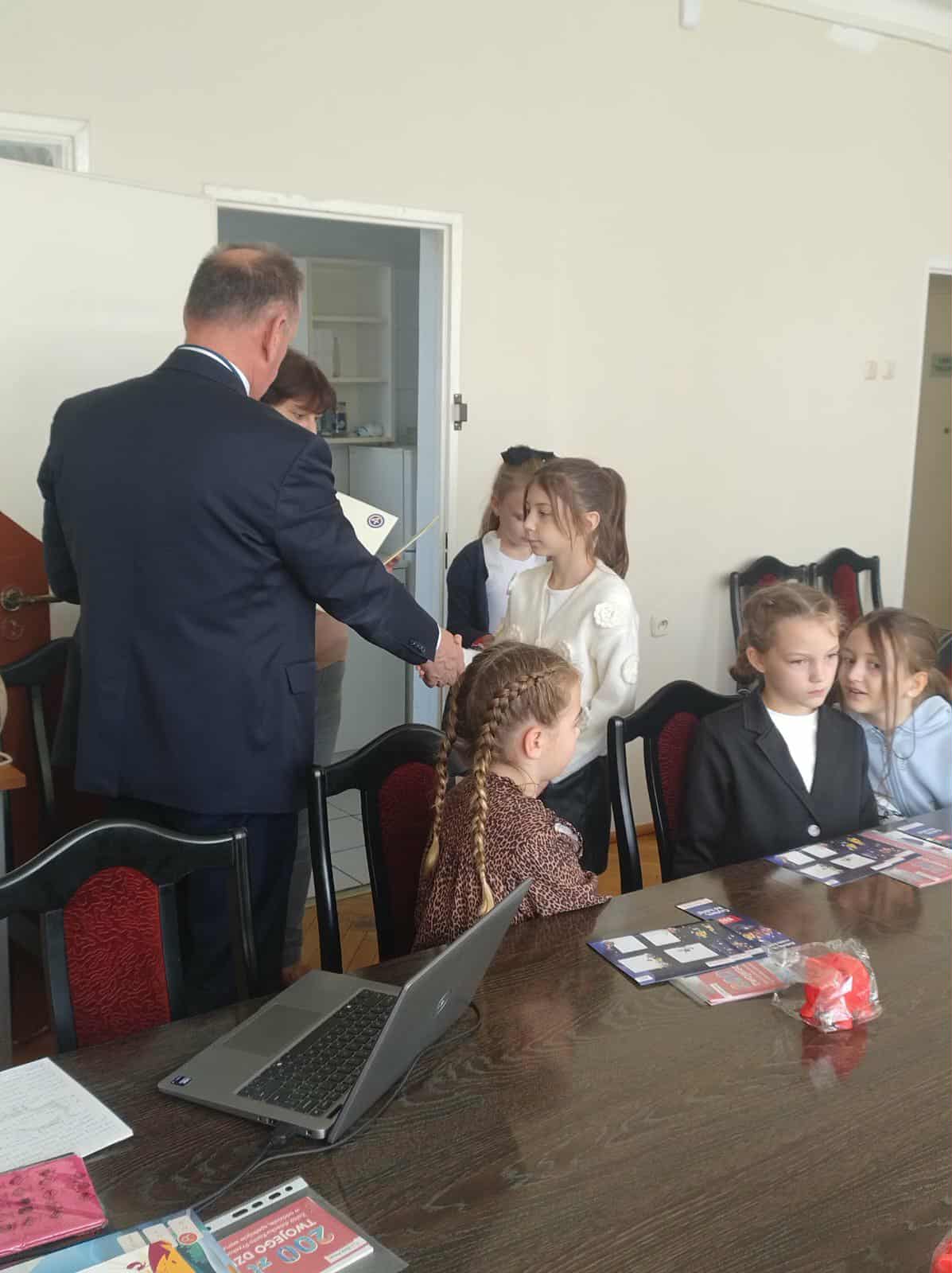 Nagrodzeni uczniowie zostali zaproszeni przez dyrektora Banku Pekao S.A., pana Arkadiusza Lendera do siedziby banku, gdzie odebrali atrakcyjne nagrody ufundowane przez bank.