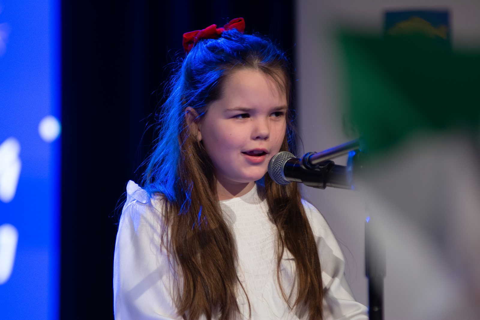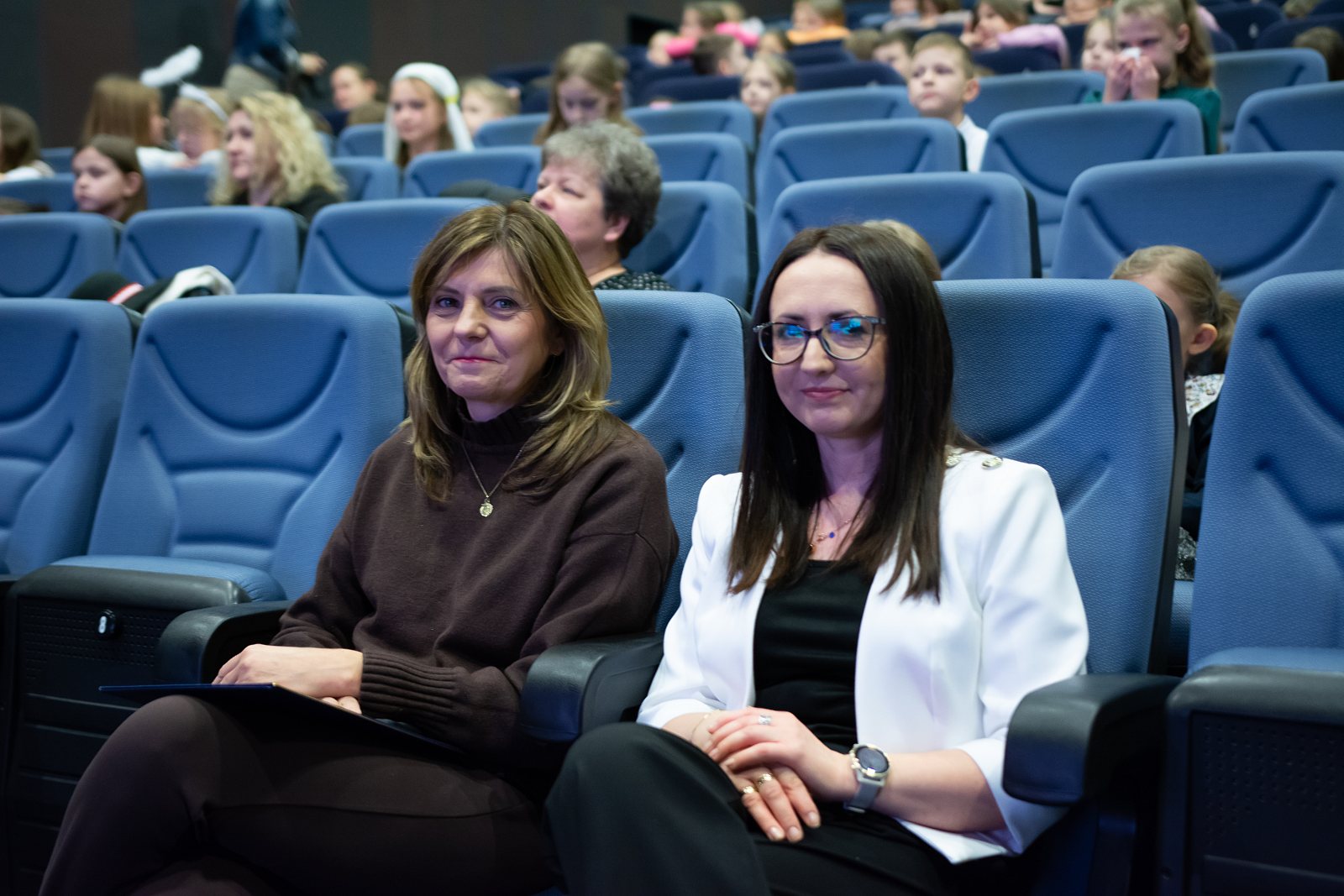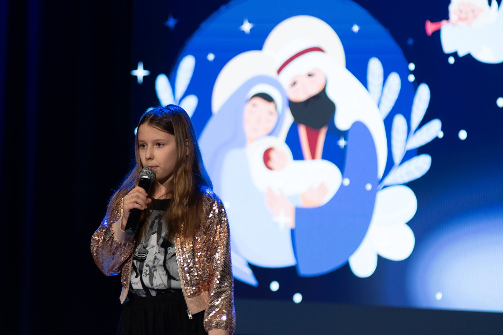 Na scenie zaprezentowali się uczniowie klas I–III krasnostawskich szkół – laureaci i wyróżnieni uczestnicy konkursu. Dzieci zachwyciły publiczność nie tylko pięknym śpiewem, ale przede wszystkim ogromnym zaangażowaniem i emocjami, jakie wkładały w wykonywane kolęd i pastorałek. Każdy występ był piękny i pełen radości, a młodzi wykonawcy z dumą i odwagą prezentowali swoje umiejętności wokalne. W imieniu Burmistrza Krasnegostawu na koncert przybyła Sekretarz Miasta – Pani Renata Stangryciuk, która przekazała uczestnikom serdeczne pozdrowienia oraz wyrazy uznania za wysoki poziom artystyczny występów, podkreślając, że sam udział w konkursie jest dla dzieci ogromnym osiągnięciem. Podczas koncertu wręczono również nagrody w Miejskim Konkursie Plastycznym dla dzieci 6-letnich „Ilustracja do polskiej kolędy lub pastorałki”, który cieszył się dużym zainteresowaniem i ukazał niezwykłą kreatywność najmłodszych uczestników. Na zakończenie wydarzenia głos zabrała Dyrektor Publicznej Szkoły Podstawowej nr 4 im. Jana Pawła II w Krasnymstawie – Pani Agata Małek, dziękując wszystkim zaangażowanym w organizację koncertu, uczestnikom oraz przedstawicielom władz miasta za objęcie wydarzenia patronatem honorowym i okazane wsparcie.