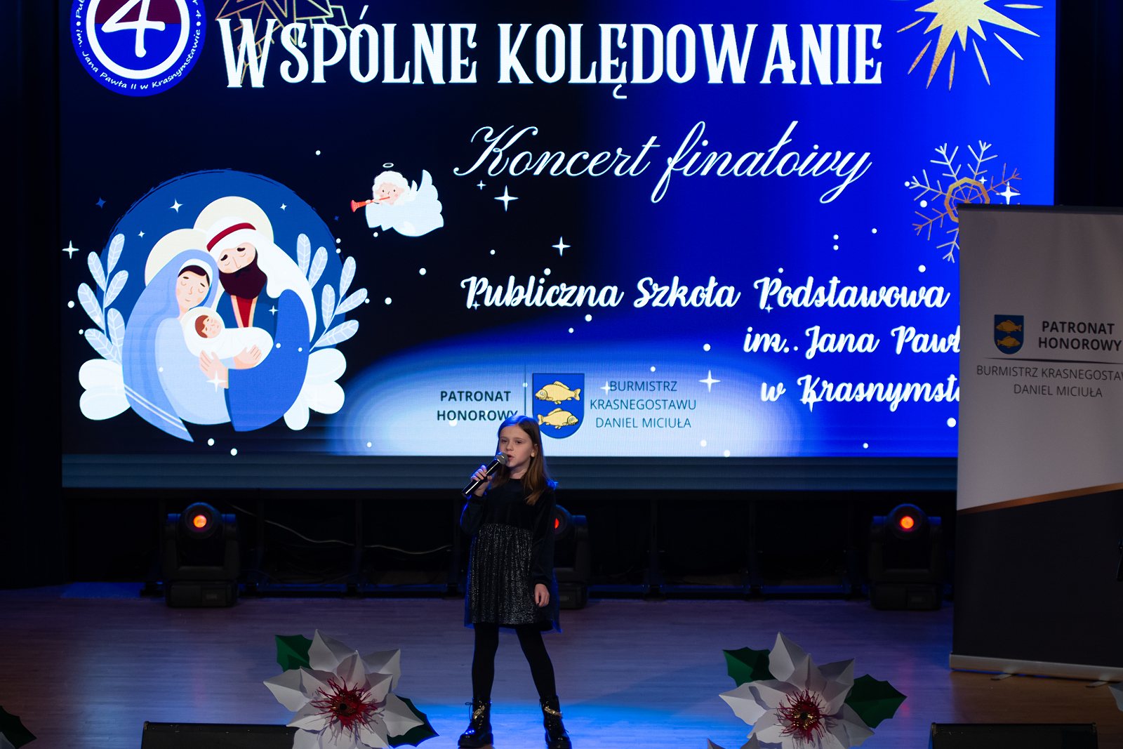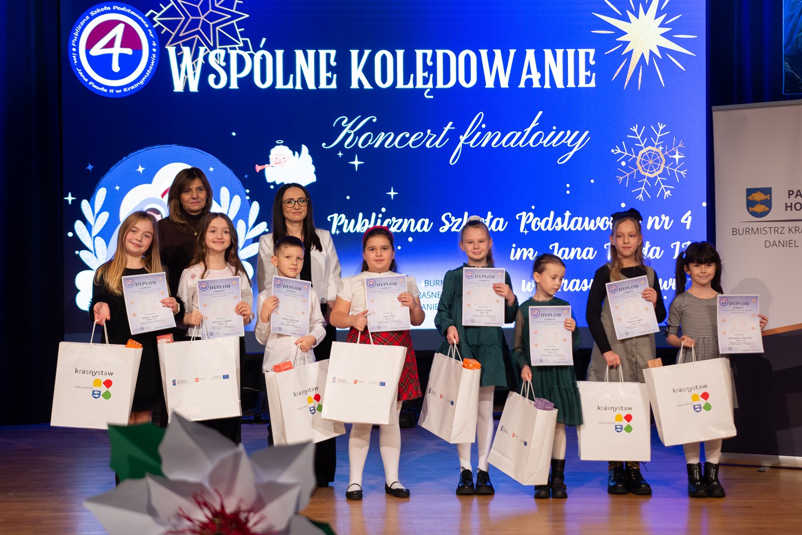 W piątek, 30 stycznia 2026 roku, sala widowiskowa Krasnostawskiego Domu Kultury wypełniła się świąteczną muzyką i wyjątkową atmosferą. Tego dnia odbył się finałowy koncert Międzyszkolnego Konkursu Kolęd i Pastorałek „Wspólne kolędowanie”, przygotowany przez Publiczną Szkołę Podstawową nr 4 im. Jana Pawła II w Krasnymstawie. Wydarzenie objęte było honorowym patronatem Burmistrza Krasnegostawu, Pana Daniela Miciuły.