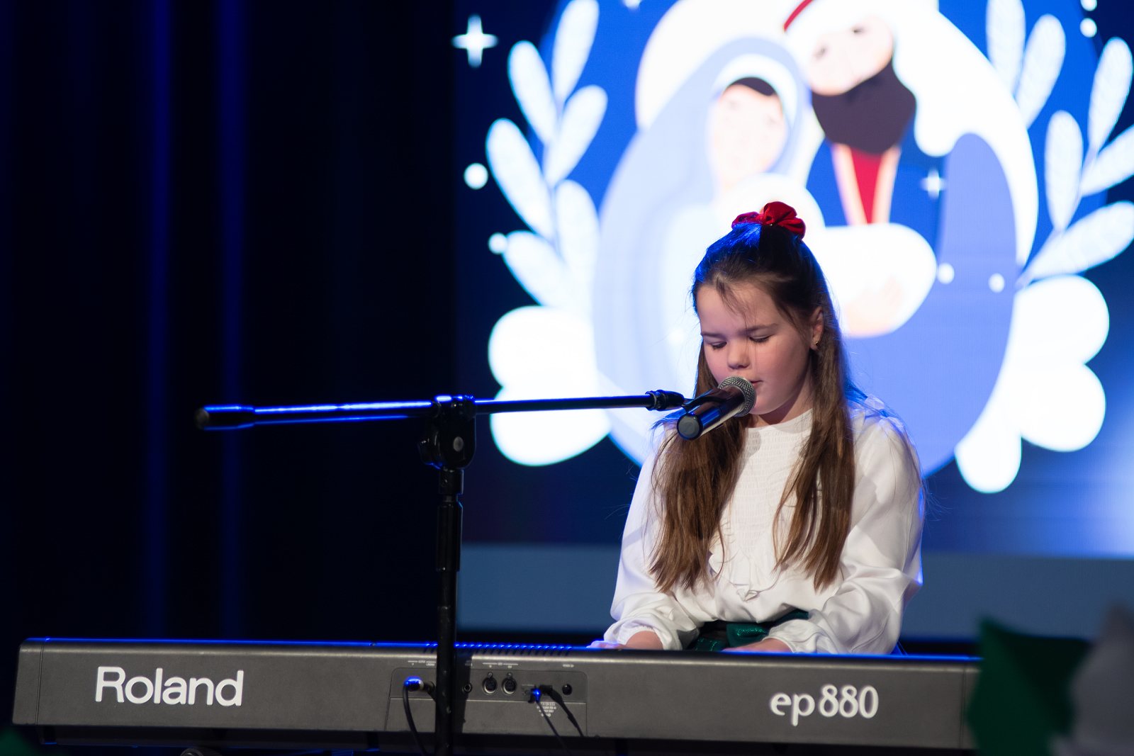 Szczególnie wzruszającym momentem było wspólne wyjście wszystkich uczestników na scenę i wykonanie kolędy „Wśród nocnej ciszy”. Ten symboliczny finał stał się pięknym podsumowaniem koncertu i prawdziwym wyrazem idei wspólnego kolędowania. Dziękujemy wszystkim, którzy przyczynili się do stworzenia tego wyjątkowego, pełnego ciepła i radości spotkania.