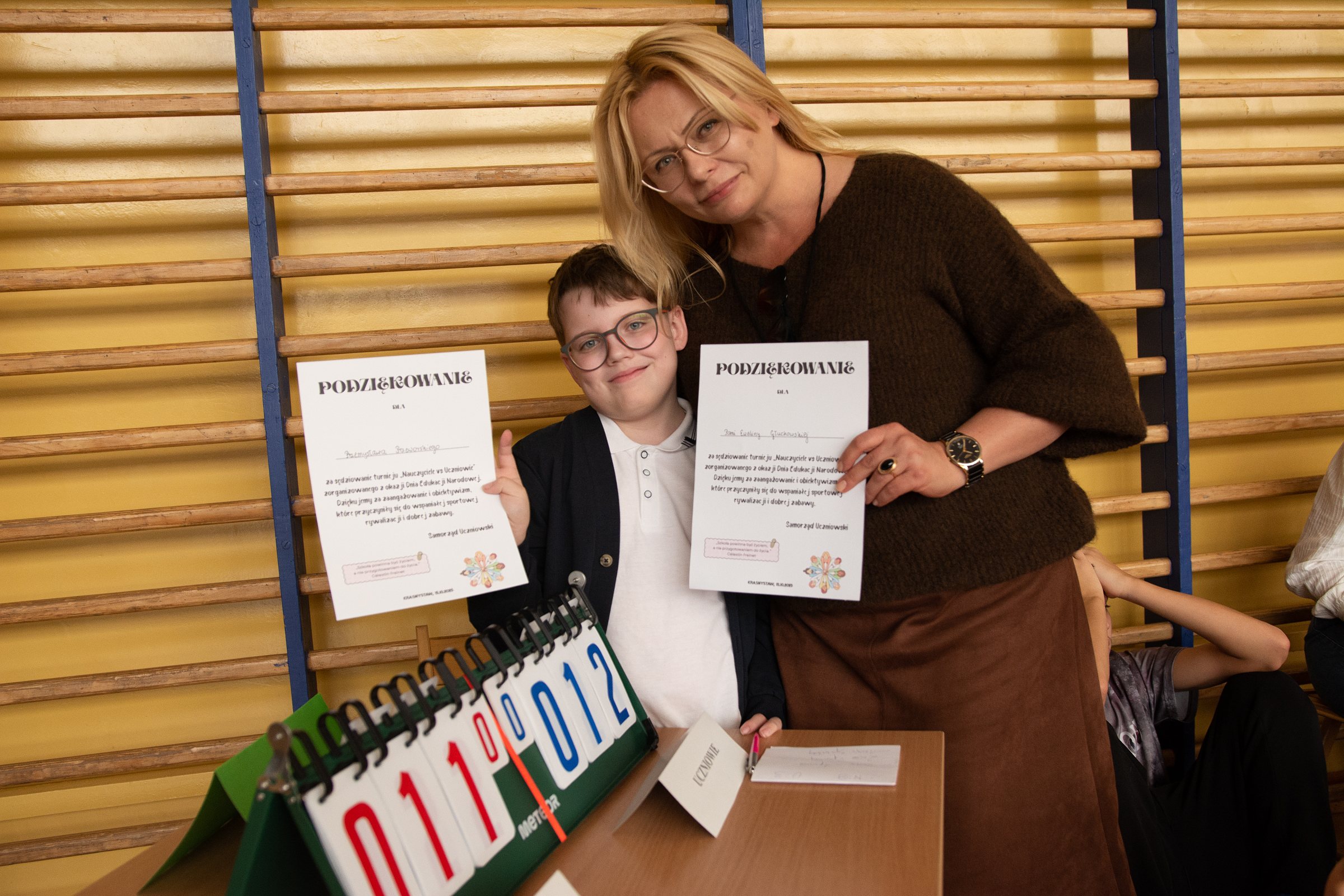 Drużyny wykazały się ogromnym zaangażowaniem, a sala gimnastyczna zamieniła się w trybuny pełne kibiców, którzy aktywnie dopingowali uczestników. Całość przebiegła w świetnej atmosferze, a jedyną oceną tego dnia była szóstka z poczucia humoru! Dziękujemy za wspólną zabawę! ![]()