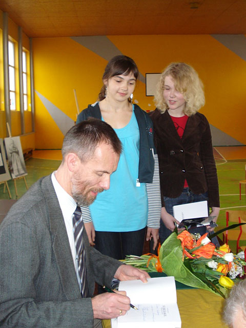 Na zakończenie spotkania otrzymaliśmy od pana Pawła Zuchniewicza dedykacje do książek. Lektury znajdują się w zbiorach naszej szkolnej biblioteki. Zachęcamy do czytania!