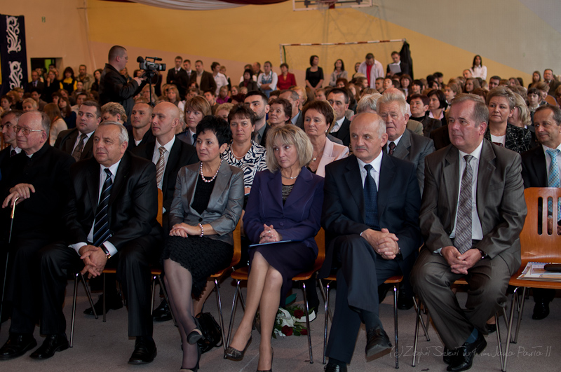 Następnie głos zabrali goście, którzy w swoich wystąpieniach życzyli satysfakcji i sukcesów w trudnym zadaniu edukacji pokolenia młodych Polaków, składali gratulacje z okazji podwójnego jubileuszu.