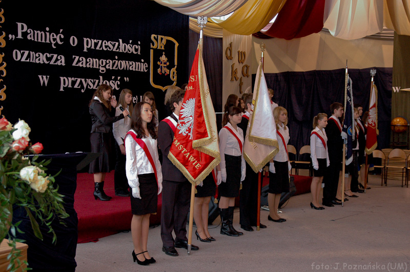 Ceremonię rozpoczęła pani dyrektor Alicja Kasprzak - Żeżuła przemówieniem, w którym przedstawiła szczegółowo kalendarium szkoły nawiązując do najważniejszych dat dla naszej placówki. Podziękowała władzom samorządowym i oświatowym oraz Radzie Rodziców za dbałość o to, że młodzież może uczyć się w szkole o europejskich standardach. Podziękowała za troskę, wydajną pomoc finansową, starania o poprawę warunków nauczycielskiej pracy, a przede wszystkim za dbałość o jakość i warunki kształcenia krasnostawskich dzieci. Stwierdziła, że nauczyciele i młodzież są dumni z harmonijnie układającej się współpracy Zespołu Szkół nr 4 z samorządem Miasta Krasnegostawu oraz organem nadzorującym szkołę – Kuratorium Lubelskim i Zamiejscowym oddziałem w Chełmie, a także z wieloma instytucjami wspierającymi działalność placówki, a przede wszystkim z rodzicami uczniów.
