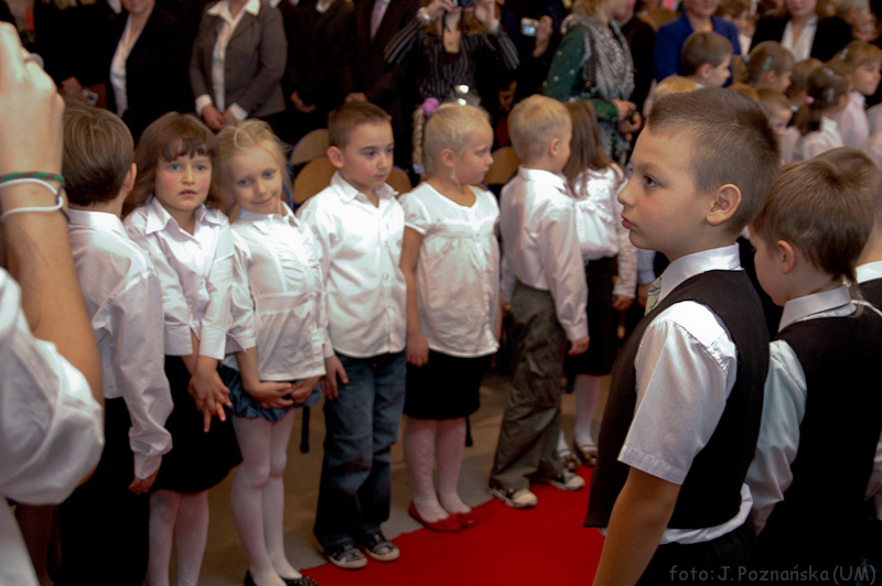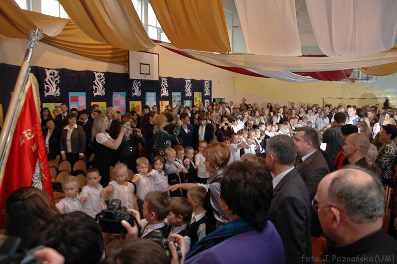 Podczas uroczystości odbyło sie także uroczyste Ślubowanie pierwszoklasistów ze szkoły podstawowej. Ceremonię poprowadziła p. Anna Mazurek. Po ślubowaniu pani dyrektor przekazała najmłodszym uczniom życzenia i obiecała nagrody niespodzianki.