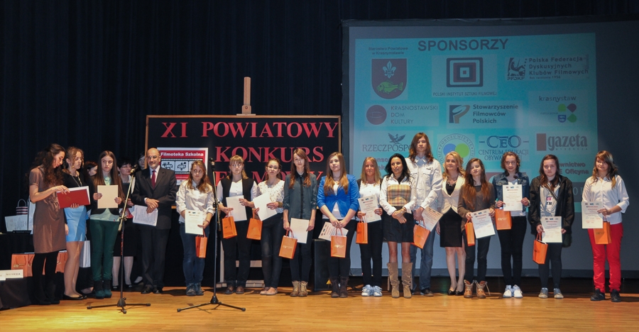 Uczestnicy XI Powiatowego Konkursu Filmowego przygotowali prace w dwóch kategoriach: praca filmowa/fotograficzna/fotokast na temat „Inspiracje Filmoteką Szkolną” i plakat filmowy. Konkurs cieszył się dużym zainteresowaniem. Do oceny uczniowie złożyli 73 prace. Zostały one nadesłane przez 20 nauczycieli (9 z gimnazjów, 11 ze szkół ponadgimnazjalnych).