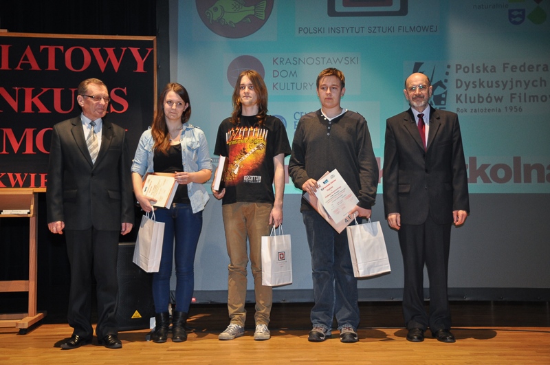 Miło nam poinformować, że wśród nagrodzonych autorów najciekawszych prac znaleźli się także uczniowie naszego gimnazjum: w kategorii "plakat filmowy" II miejsce w grupie wiekowej uczniów klas gimnazjalnych zajął Norbert Surowiecki z klasy Ia, a wyróżnienia otrzymali: Julia Dąbrowa z kl.Ic , Bartłomiej Krawiec z kl. IIb oraz Ilona Roman z kl. Ia Uczniów przygotowała do konkursu p. Agnieszka Rybczyńska-Manachiewicz. Uczestnicy konkursu otrzymywali dyplomy i nagrody.