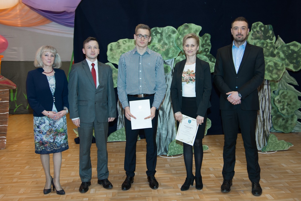 12 lutego Dzień Prymusa obchodzony był uroczyście w naszej szkole. Obecni byli zaproszeni goście: pan Krzysztof Gałan – Sekretarz Miasta, Bożena Dąbrowska – Przewodnicząca Rady Rodziców, dyrekcja, nauczyciele i wychowawcy. Głównymi uczestnikami uroczystości byli oczywiście nasi najlepsi uczniowie - prymusi i ich rodzice. Prymusi z rąk dyrektor szkoły p. Alicji Kasprzak-Żeżuły i Sekretarza Miasta pana Krzysztofa Gałana otrzymali stypendia i wyróżnienia a ich rodzice listy gratulacyjne. Kilkakrotnie podkreślano, że wymiar finansowy wyróżnienia jest istotny, bo stanowi materialną gratyfikację ciężkiej uczniowskiej pracy, często wyrzeczeń i rezygnacji z innych atrakcyjnych dla uczniów działań, ale nie mniej ważny jest aspekt pozamaterialny: wysokie poczucie własnej wartości, prestiż, szacunek, wyróżnienie i ciągłe inwestowanie we własną edukację. Młodzież i ich rodzice mogli czuć się dumni, kiedy pan Krzysztof Gałan w swoim wystąpieniu zwrócił się do prymusów, jako przyszłej elity miasta, powiatu, kraju. Młodzież na ręce dyrektora złożyła podziękowania wszystkim nauczycielom i wychowawcom, a p. Krzysztofowi Gałanowi za ufundowane przez burmistrza miasta stypendia.