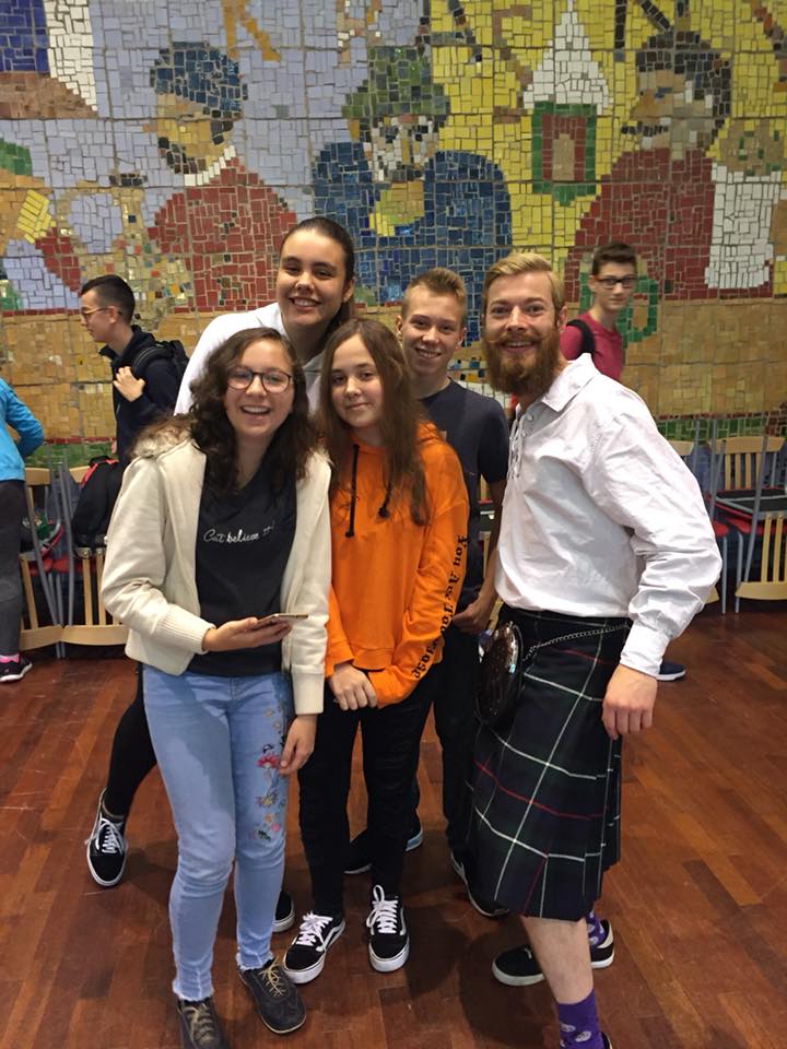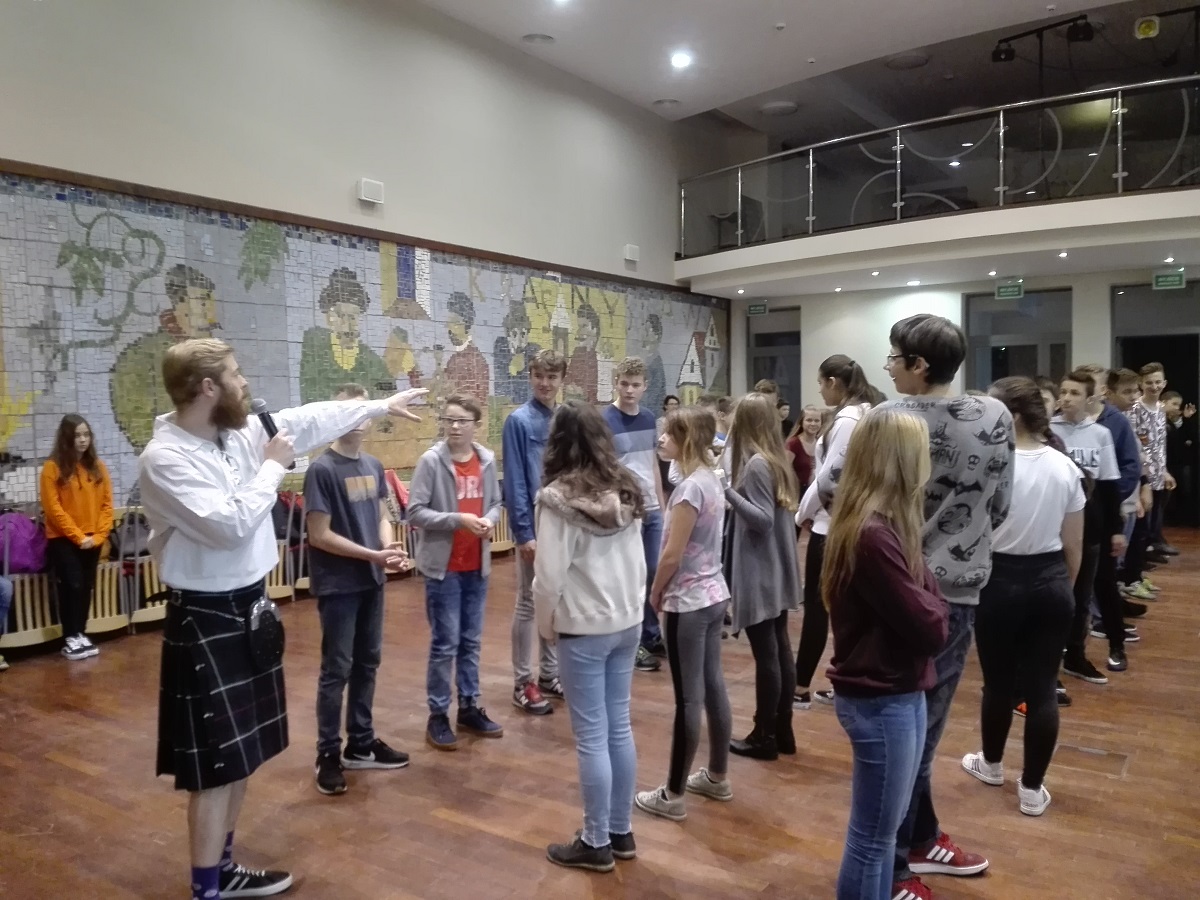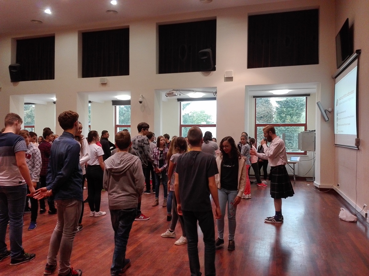 11 października uczniowie naszej szkoły uczestniczyli w warsztatach na temat Irlandii zorganizowanych przez organizację Nauka Bez Granic. Zajęcia w języku angielskim prowadził Richie Mullaney charyzmatyczny irlandzki nauczyciel . Podczas spotkania uczniowie poznali historię Irlandii, usłyszeli wiele nieznanych i ciekawych informacji o tym kraju. Niezapomnianych emocji dostarczyły również zajęcia taneczne, podczas których młodzież spróbowała swoich sił w irlandzkich tańcach ludowych.