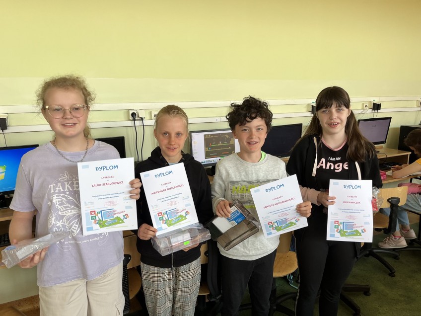 Komisja Konkursowa po obejrzeniu nadesłanych prac na animację, historyjkę w środowisku Scratch lub Baltie; nagrodziła uczniów z kl. IV-VII.