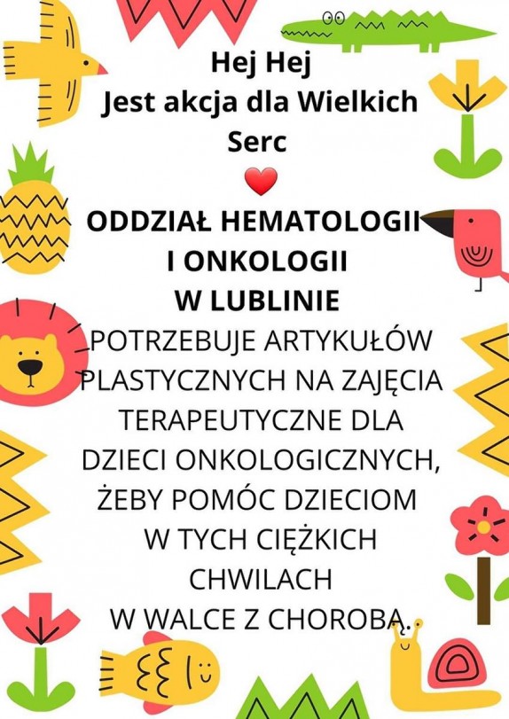 Nasza szkoła włącza się w akcję zbierania artykułów plastycznych dla Małych Pacjentów