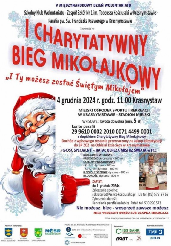 Zapraszamy na I Charytatywny Bieg Mikołajkowy